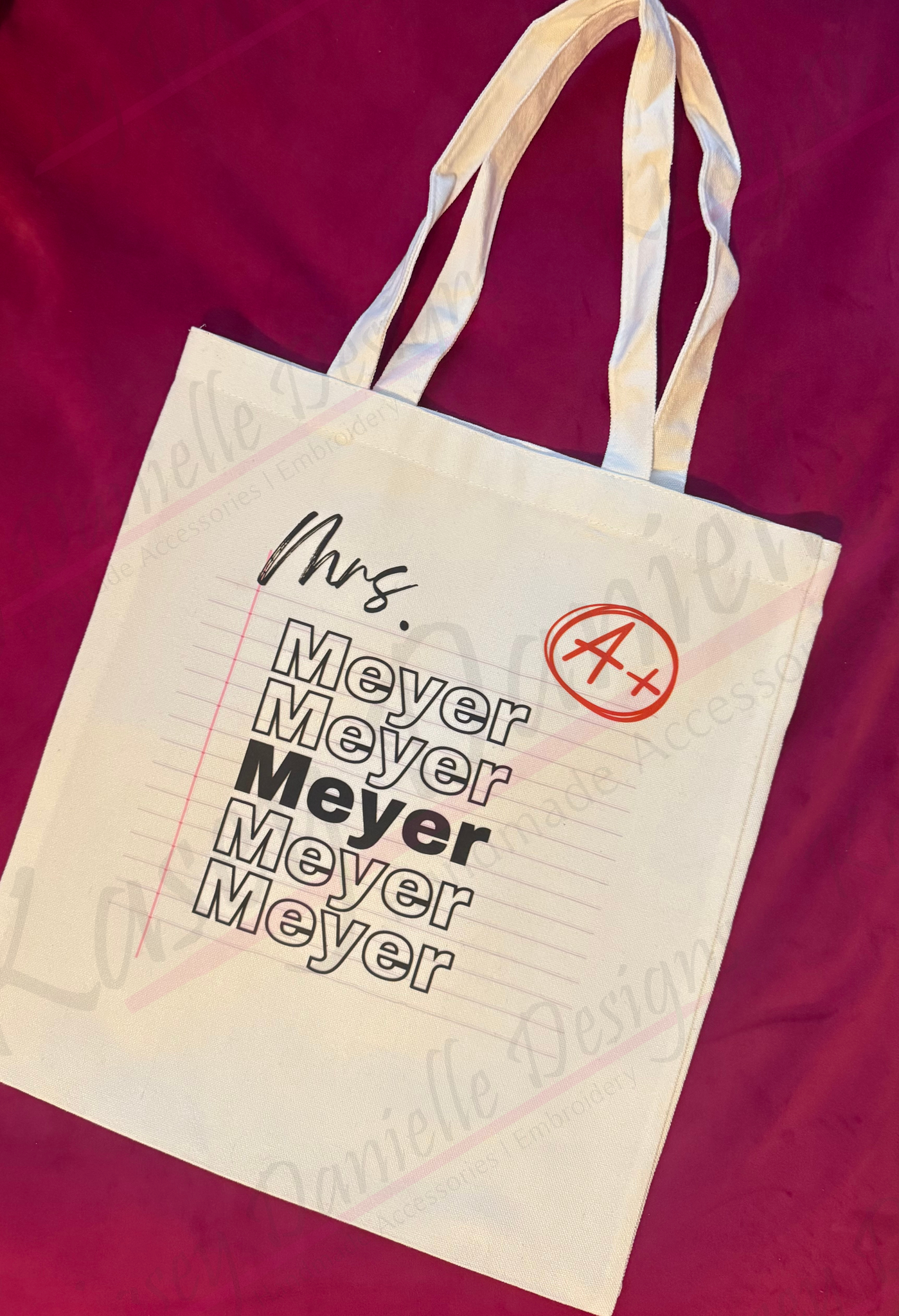 Custom Teacher Name Tote Bag, Personalized Last Name Totes, Back to School, Reusable Shopping Bag, Educator Totes
